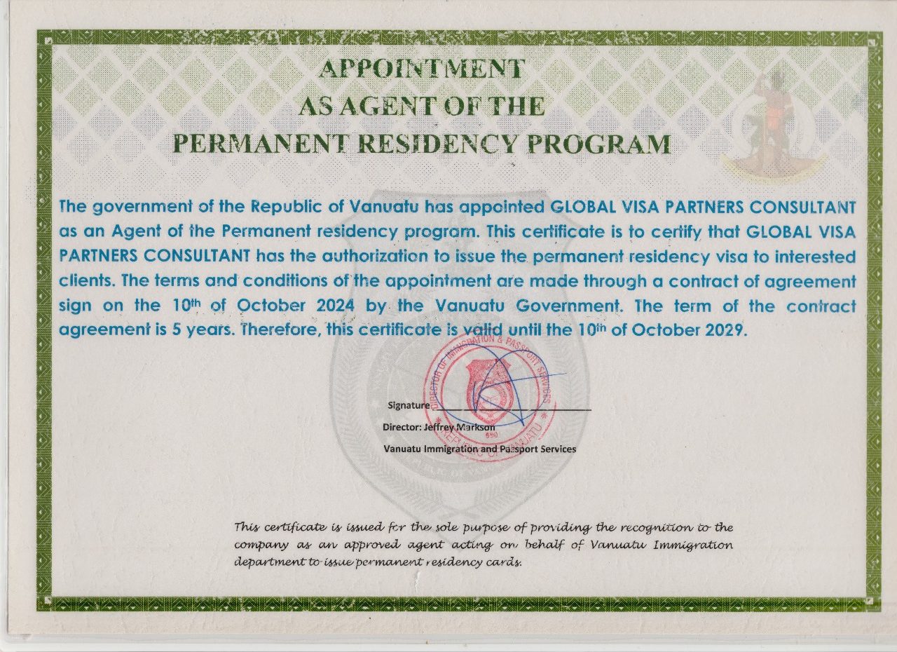 瓦努阿图永久居留权意味着您可以随时进入并在瓦努阿图生活,无需签证,有效期为十年且可续签。